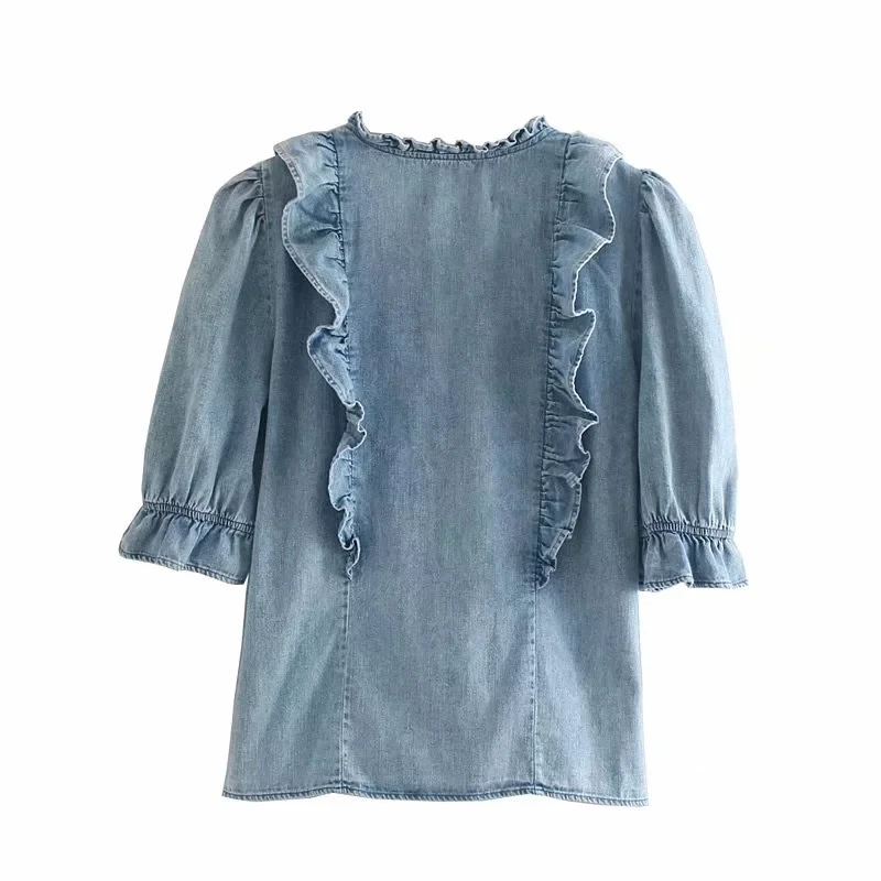 Product Name: Chemisier en denim à manches bouffantes à volants en cascade Withered high street femmes blusas mujer de moda 2019 chemise femmes hauts et chemisiers