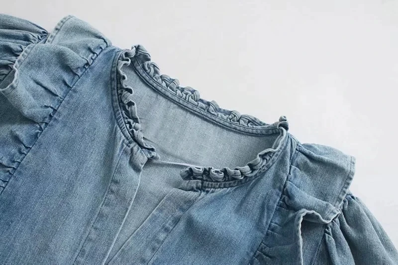 Special Offer Chemisier en denim à manches bouffantes à volants en cascade Withered high street femmes blusas mujer de moda 2019 chemise femmes hauts et chemisiers Discount 0% Today!