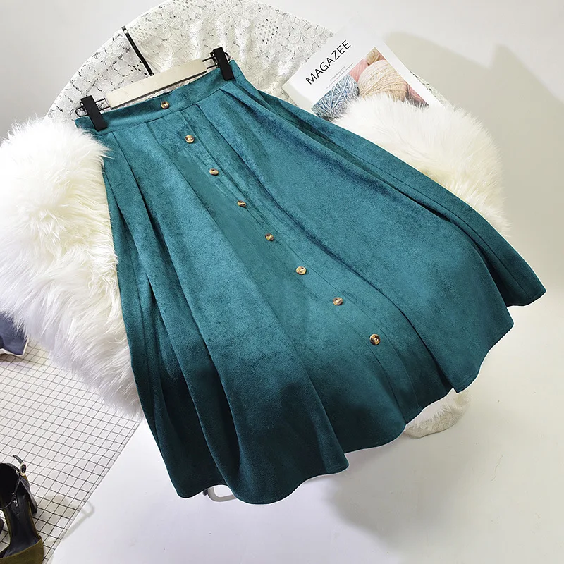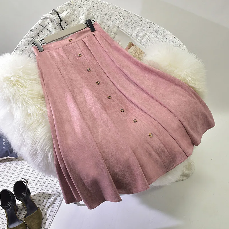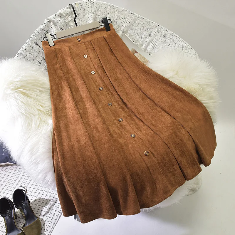 Product Name: Sherhure 2019 haute qualité femmes daim jupe longue plissée jupes femmes Saias Midi Faldas Vintage taille haute femmes jupe Midi