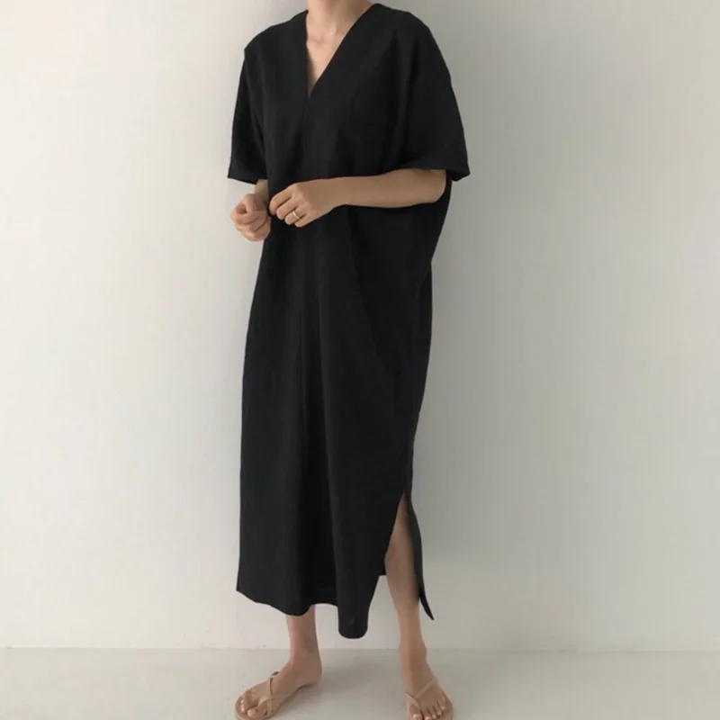 . (36% Off) Vente SHENGPALAE 2019 Style décontracté ample la robe pour l été col en V à manches courtes grande taille mode coréenne femmes robes marée FM57412 Pas Cher En Ligne.