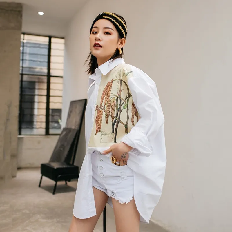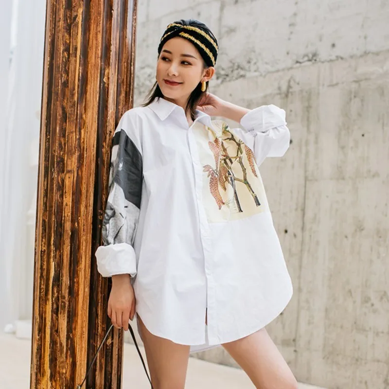 Special Offer Deuxtwinstyle imprimer chemises pour femmes revers col à manches longues Hit couleur surdimensionné Blouse hauts femme printemps 2019 mode nouveau Discount 37% Today!