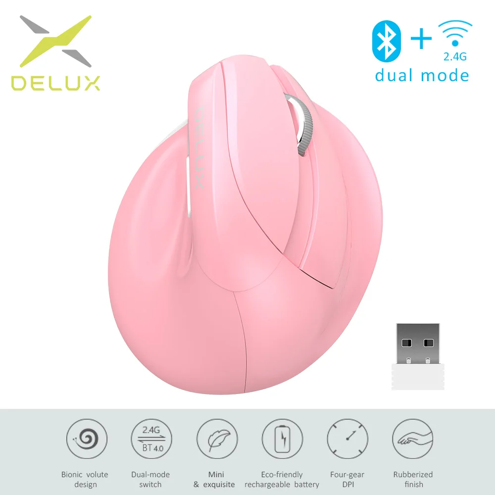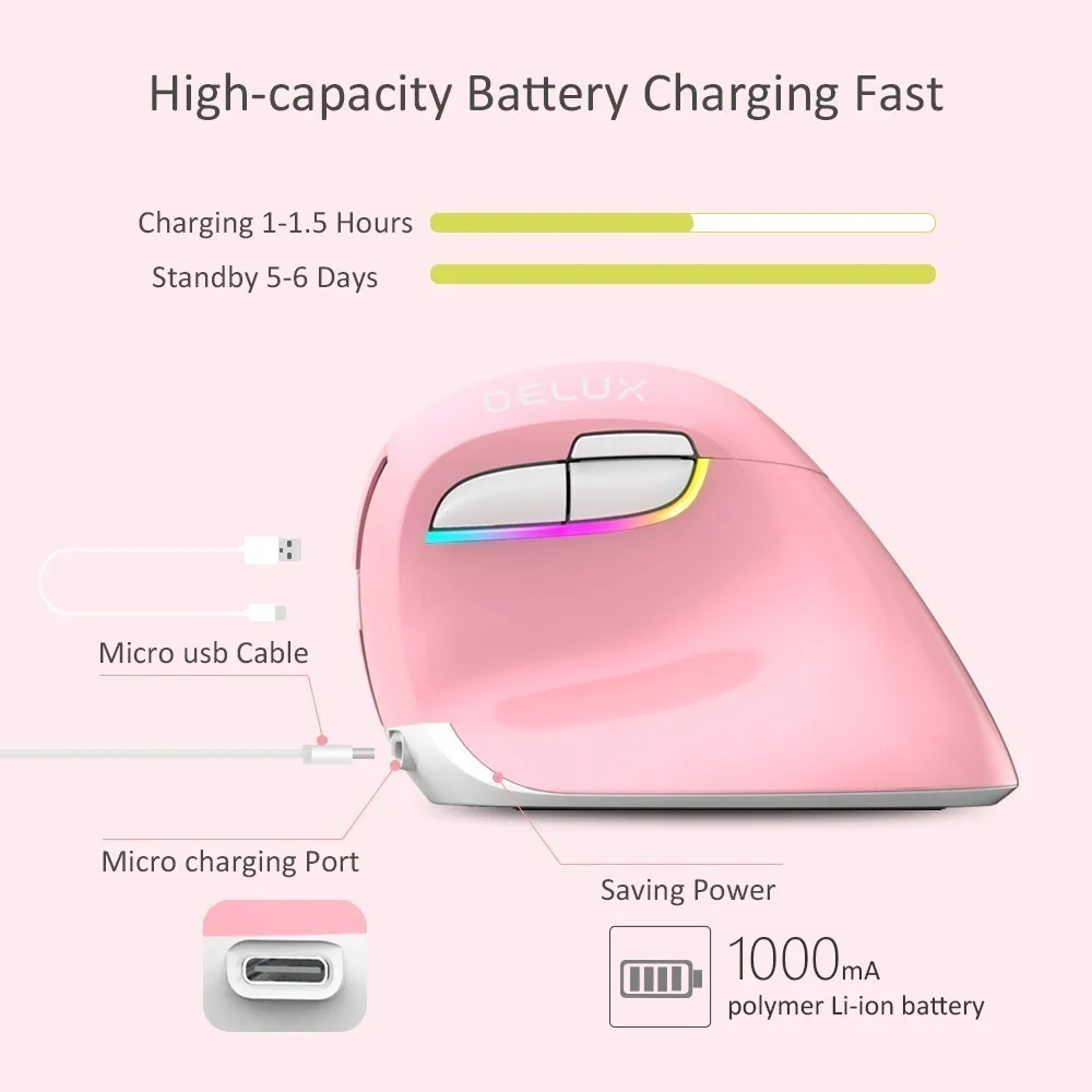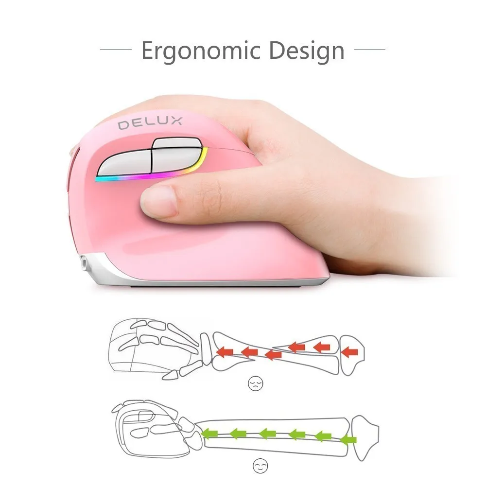 Product Name: Souris sans fil Delux M618 Mini Bluetooth 4.0 + 2.4 GHz souris silencieuse clic RGB souris verticale Rechargeable ergonomique pour les petits utilisateurs de main