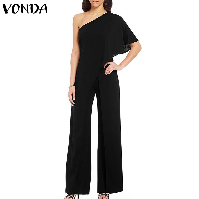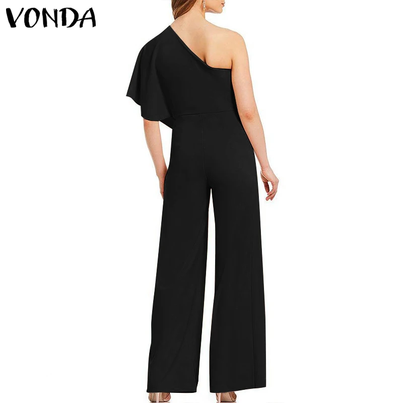 Special Offer Barboteuses Sexy femmes combinaisons 2019 VONDA mode épaule dénudée à volants jambes larges pantalons casual longues combishorts grande taille salopette Discount 45% Today!