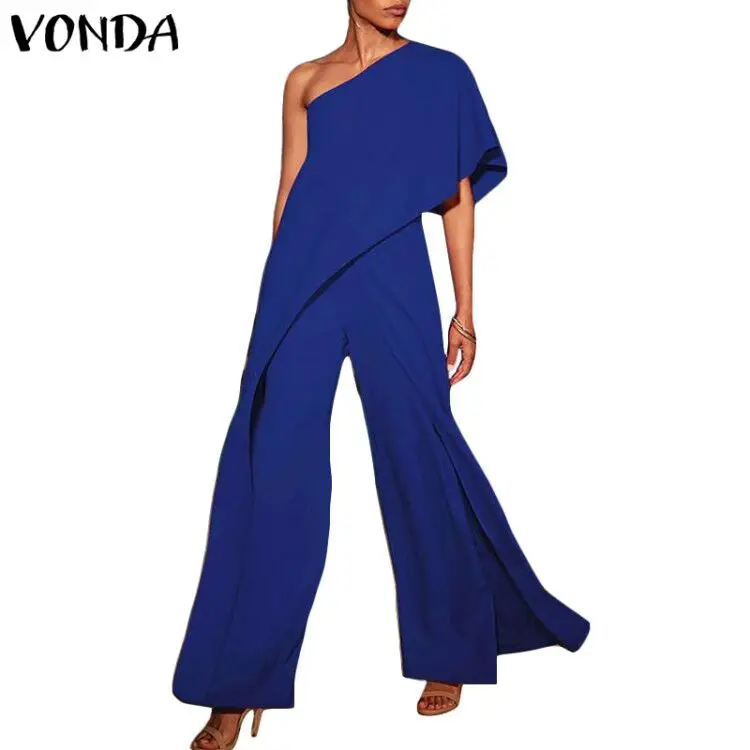 Product Name: Barboteuses Sexy femmes combinaisons 2019 VONDA mode épaule dénudée à volants jambes larges pantalons casual longues combishorts grande taille salopette