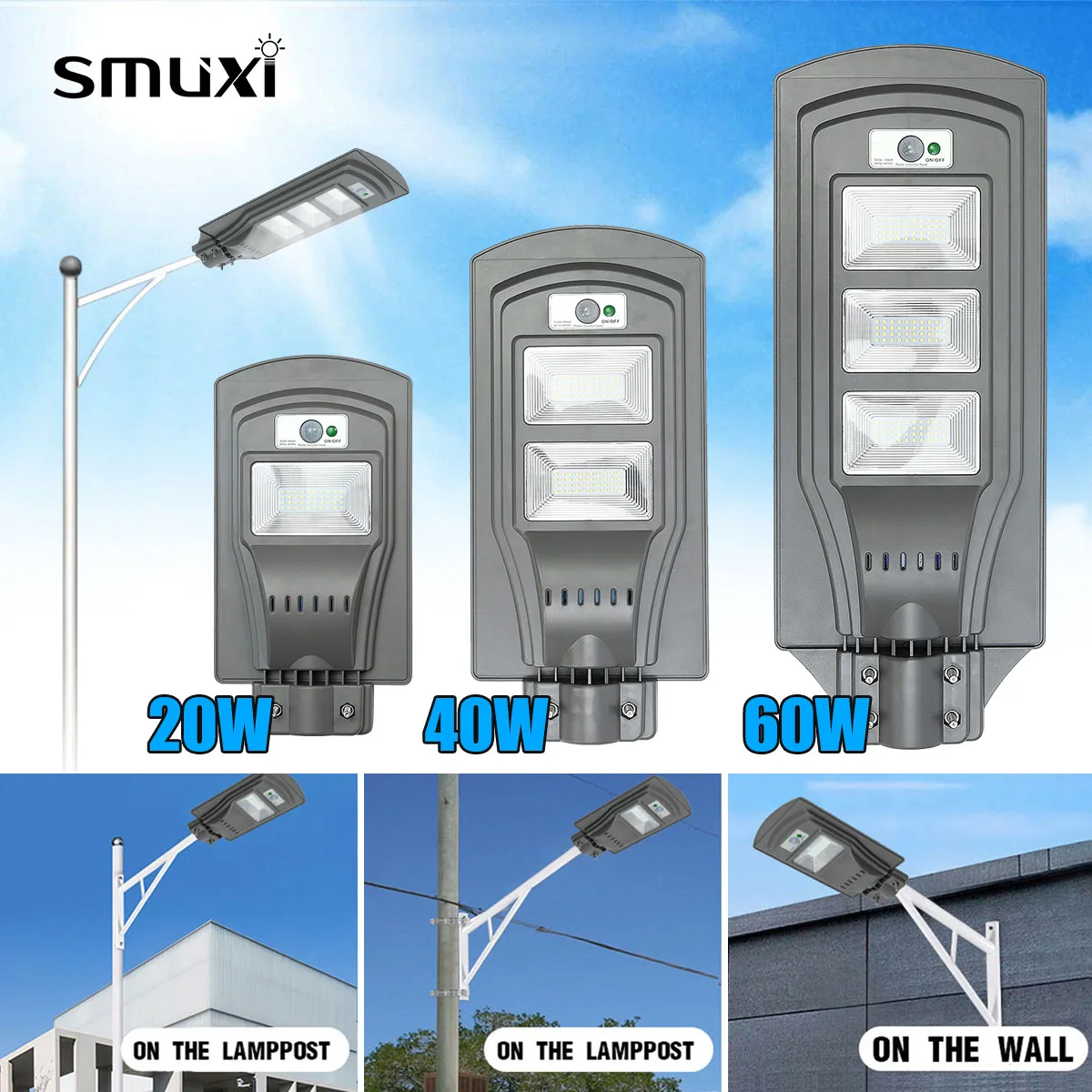 Product Name: Lampadaire solaire LED lampe de mur LED 20 W 40 W 60 W capteur de mouvement étanche lampe de sécurité pour jardin cour