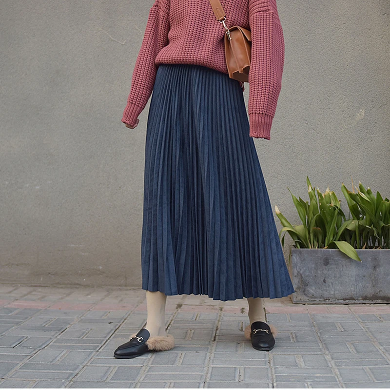 Special Offer 2019 deux couches femmes daim jupe rose taille haute longue plissée jupes femmes Saias Midi Faldas Vintage femmes Midi jupe Discount 21% Today!
