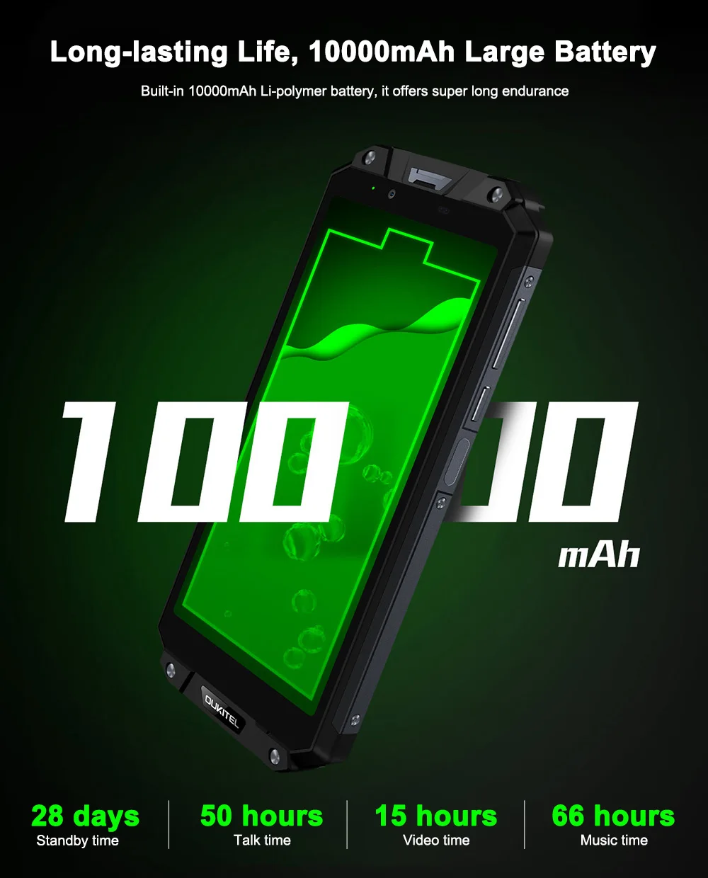 Product Name: OUKITEL WP2 IP68 étanche à la poussière antichoc téléphone portable 4GB 64GB MT6750T Octa Core 6.0 \"189 10000mAh empreinte digitale Smartphone