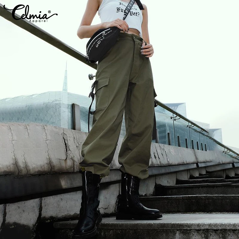 Special Offer Celmia 2019 nouveau femmes taille haute pantalon lâche Joggers Streetwear Harem pantalon dames Cargo pantalon Capris Femme grande taille pantalon Discount 31% Today!