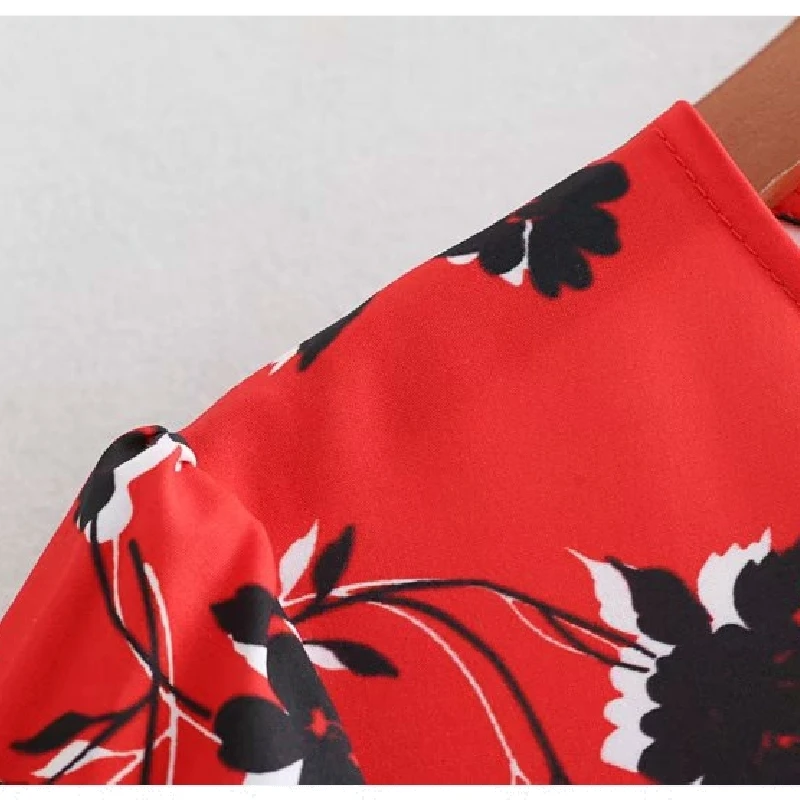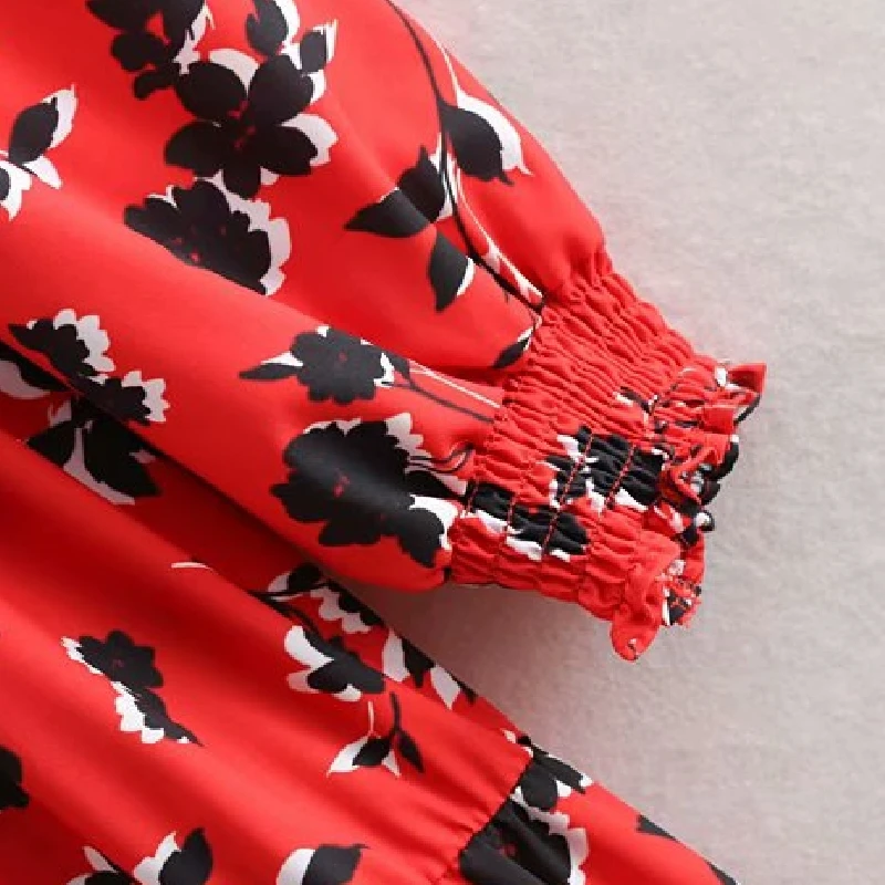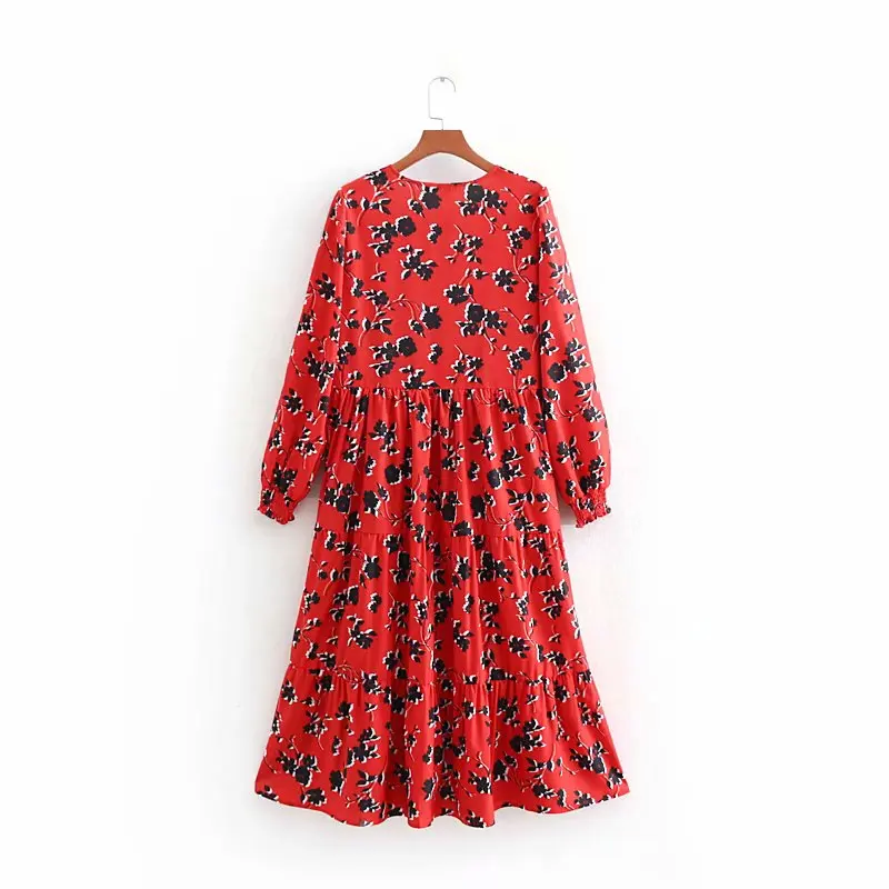 Product Name: 2019 femmes mode imprimé floral rouge longue robe dames o cou plissé grand swing chic vestidos rétro marque robes de soirée DS1897