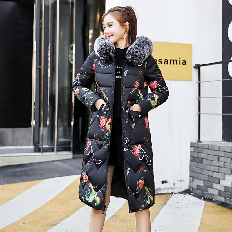 Special Offer Les deux côtés peuvent être portés 2019 nouveauté femmes veste d hiver avec fourrure à capuche longue rembourré femme manteau Outwear impression Parka Discount 37% Today!