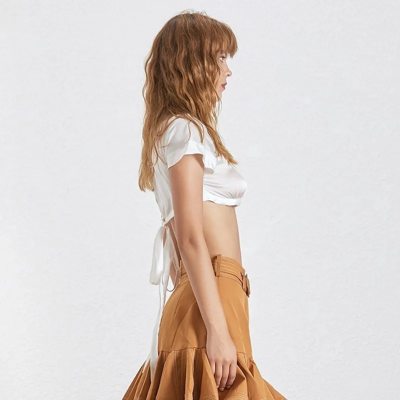 Product Name: Deuxtwinstyle été blanc Bandage Sexy t shirt pour les femmes O cou à manches courtes Slim Crop hauts femme mode vêtements 2019 nouveau