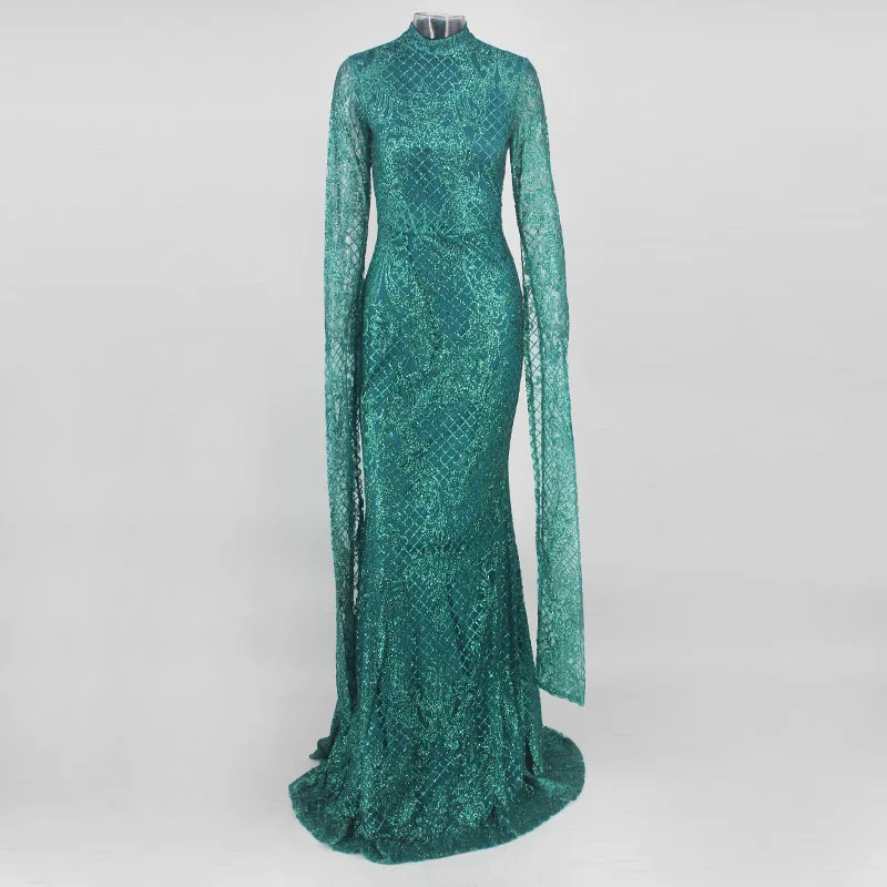Product Name: Robe de cérémonie femmes automne Sexy moulante Sequin maille robes de soirée 2019 col roulé manches évasées automne élégant longue robe Maxi