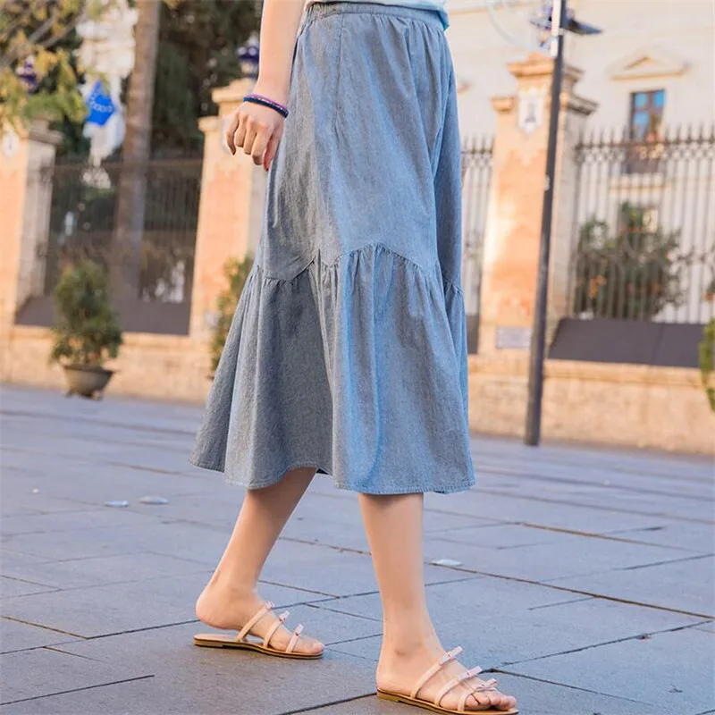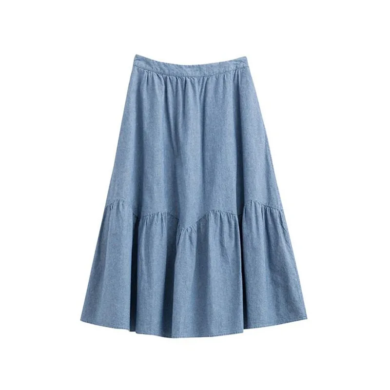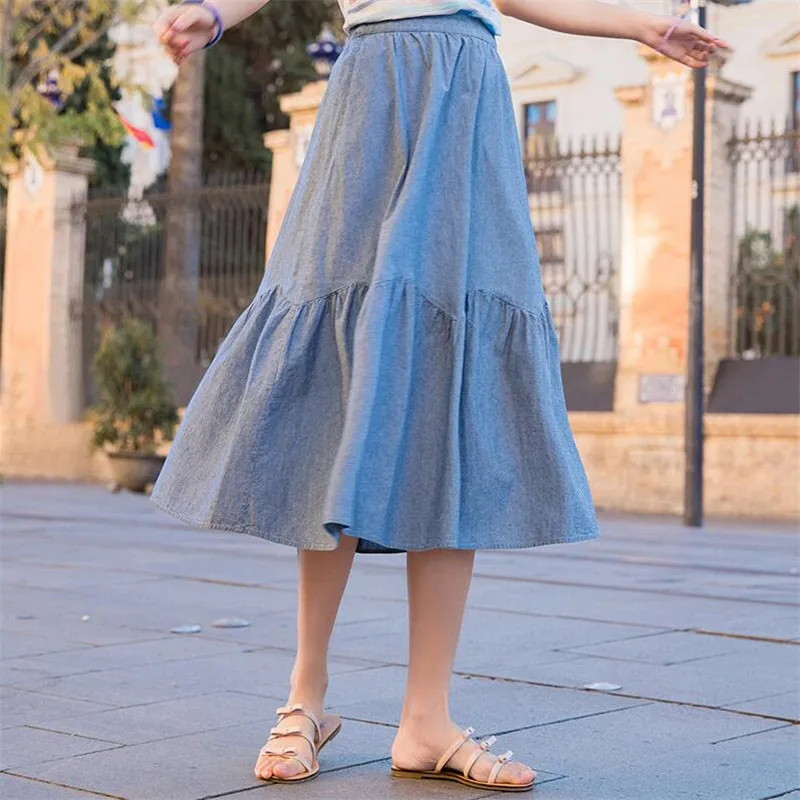 Product Name: Été 2019 printemps décontracté femmes couleur unie a ligne Denim jupes doux femmes taille haute étudiants rue jupes fille grande taille 7XL