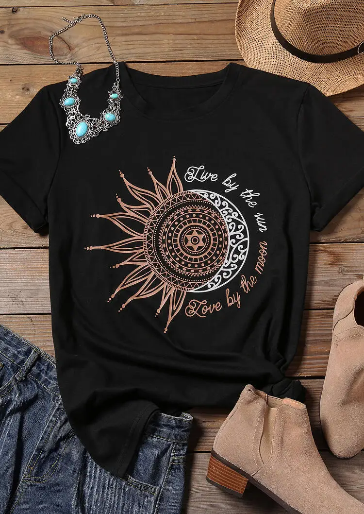 Special Offer Hauts T shirt femmes 2019 nouveau T shirt noir Femme imprimé t shirts col rond mode Femme T shirt décontracté hauts T shirt Vintage femmes Discount 25% Today!