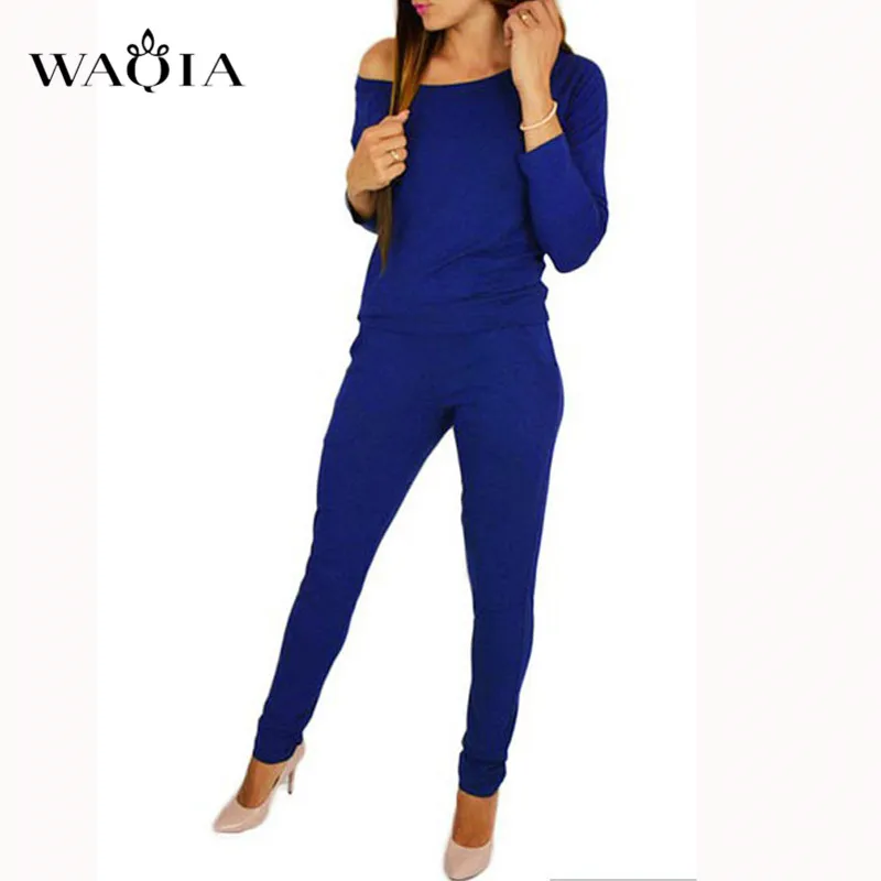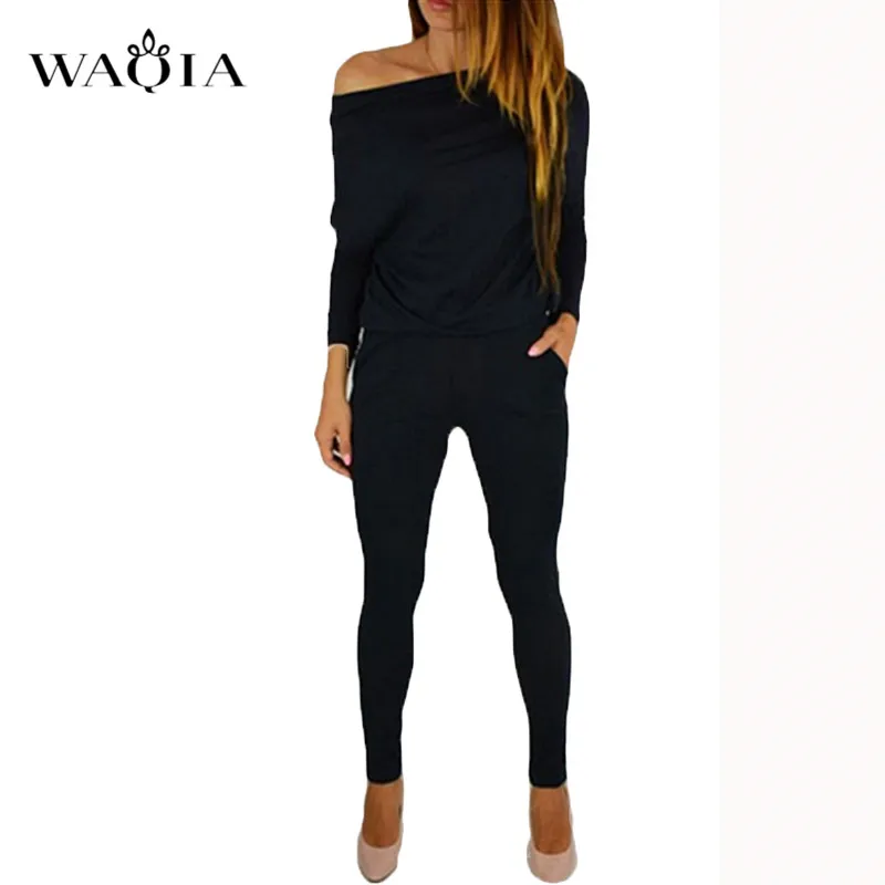 Special Offer WAQIA combinaison femmes Sexy épaules dénudées Slash cou à manches longues femmes combinaison élégant mince pantalons longs combinaison pour les femmes 2018 Discount 28% Today!