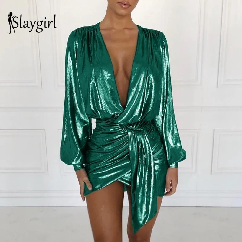 Special Offer Slaygirl bandage enveloppement moulante robe femmes Sexy robes de soirée élégant profond col en V Mini automne printemps robe 2019 Vestidos Discount 30% Today!