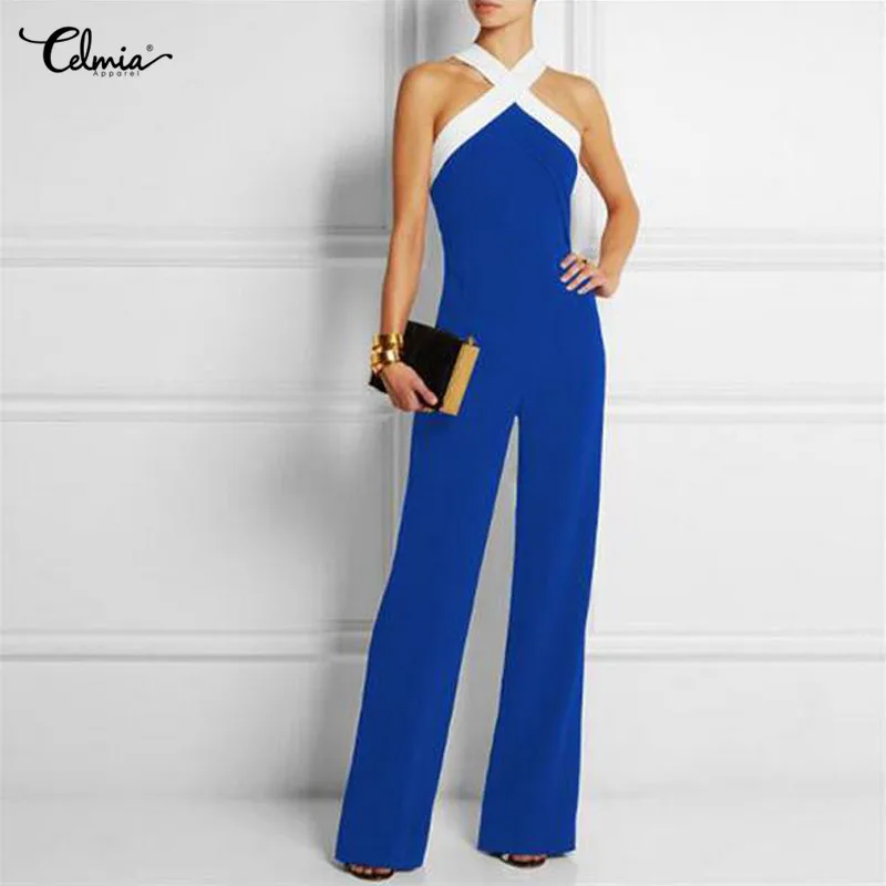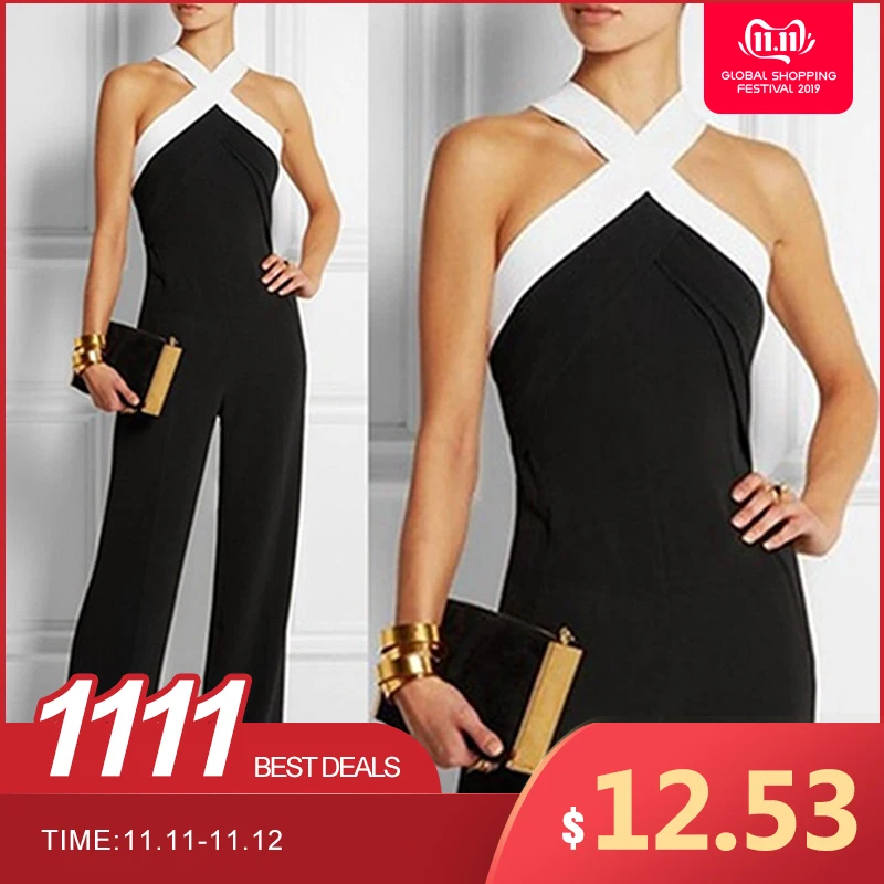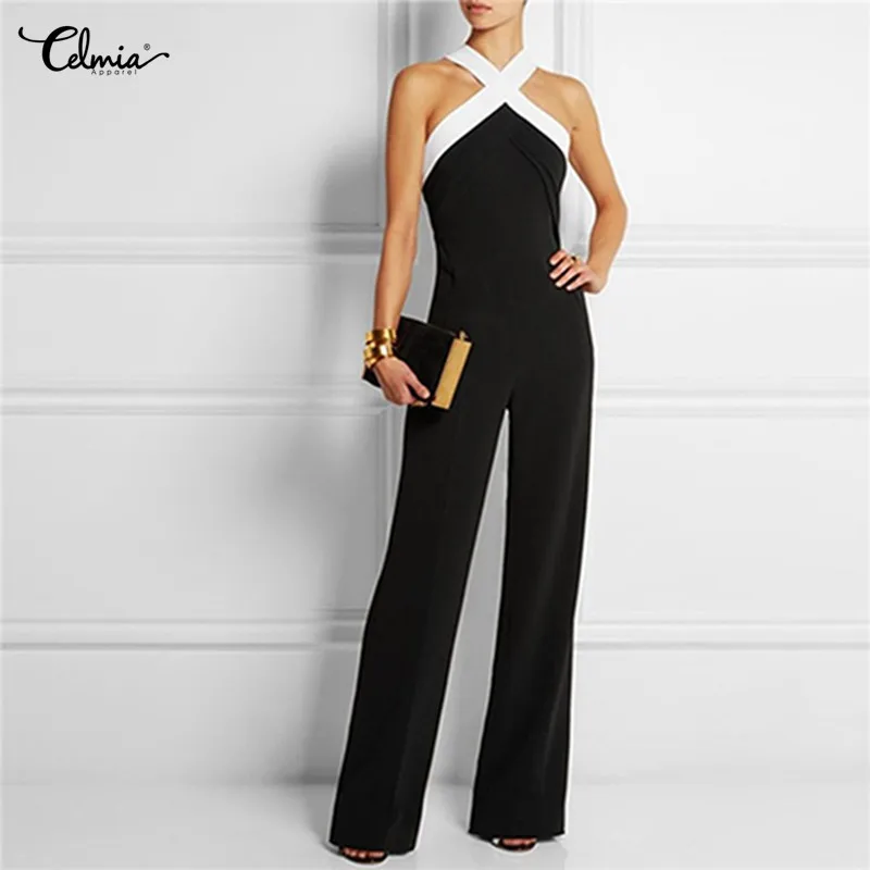 Special Offer Longues femmes combinaisons 2019 été grande taille pantalon Sexy licou cou épaules nues sans manches barboteuses décontracté combishort dame salopette Discount 31% Today!
