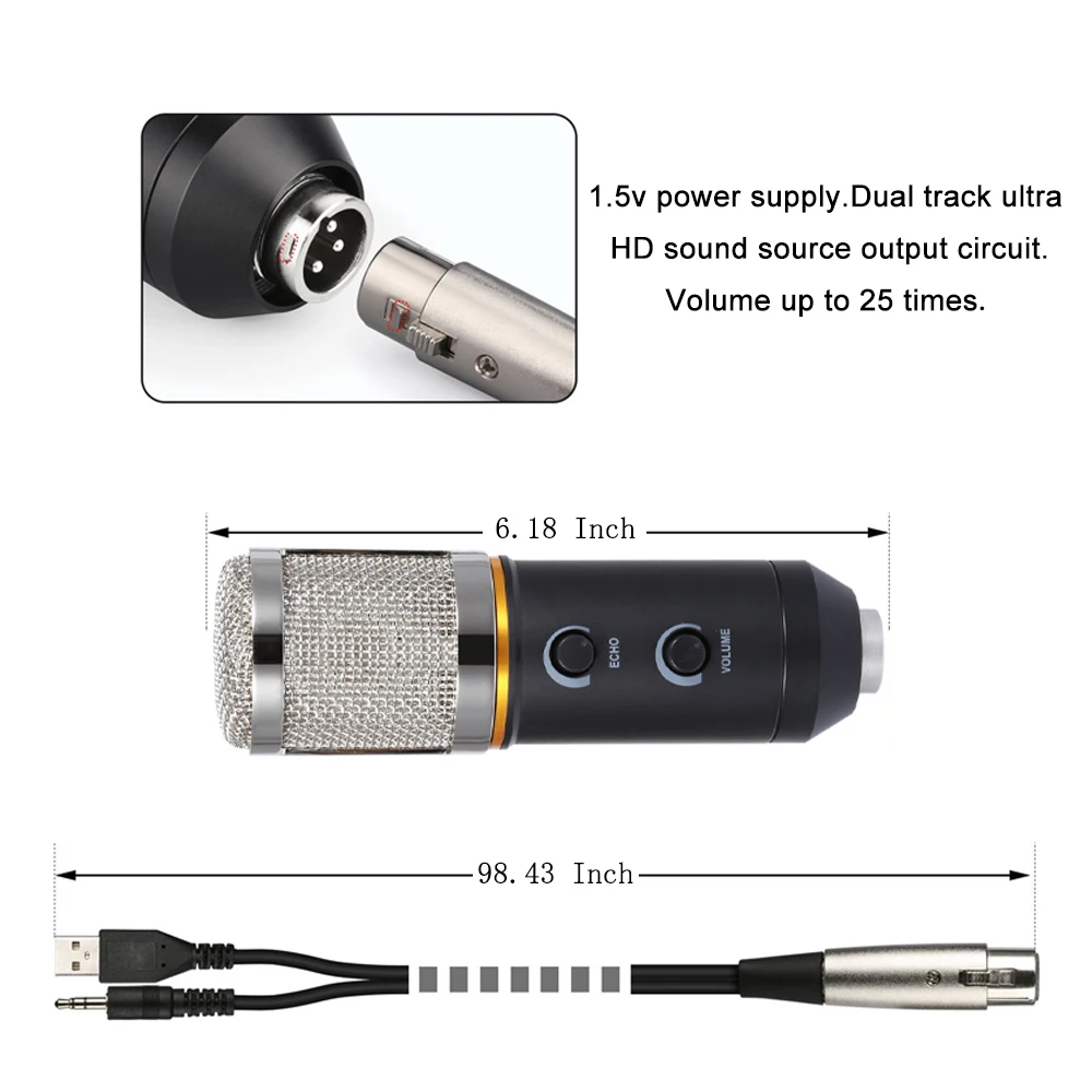 Product Name: GEVO MK F200FL Microphone à condensateur pour ordinateur Studio Profesionales 3.5mm support filaire micro USB pour PC karaoké ordinateur portable enregistrement