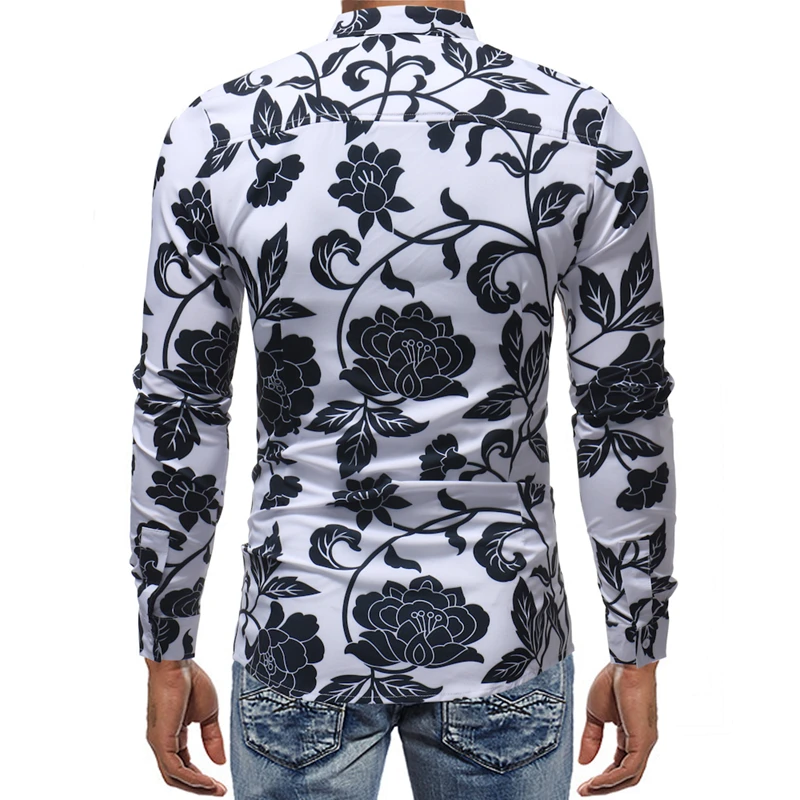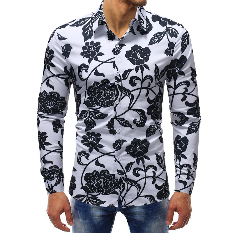 Product Name: M 5XL hommes vêtements 2018 nouveau automne hommes mode impression 3D fleur décontracté affaires à manches longues Camisa Masculina chemise hawaïenne