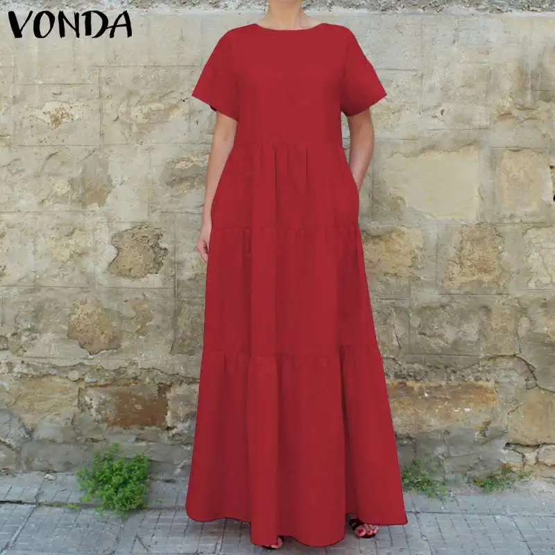 Special Offer VONDA 2019 femmes robe d été Vintage à manches courtes noir longues Maxi robes ligne a plissé Vestido plage fête grande taille robe d été Discount 45% Today!