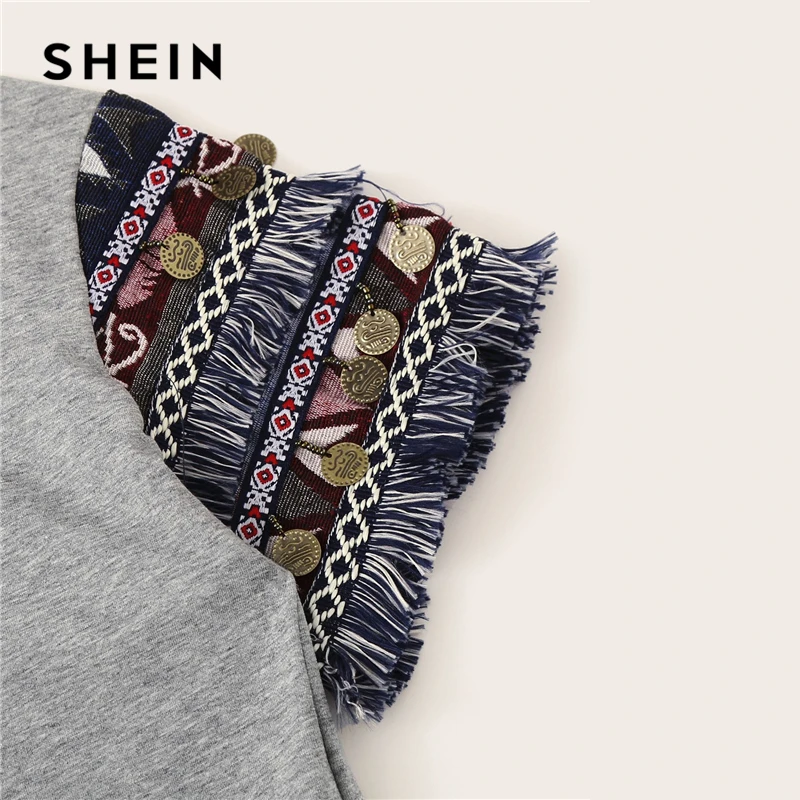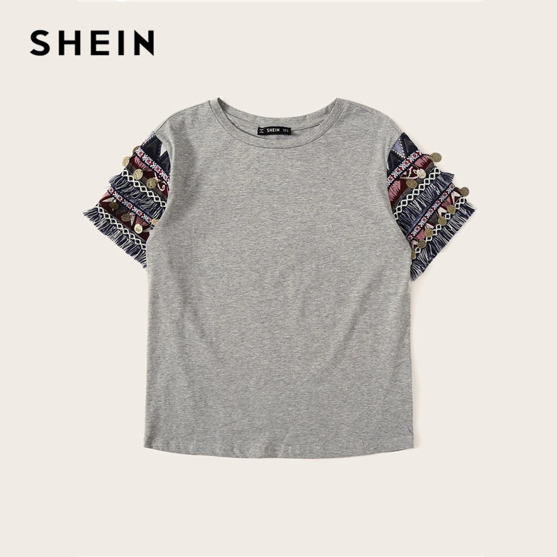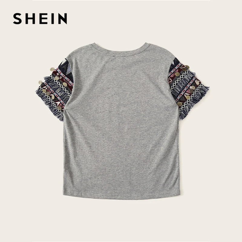 . (45% Off) Achat SHEIN Style folklorique frange garniture à plumes t shirt décontracté femmes 2019 été à manches courtes extensible Boho mignon t shirt hauts Pas Cher Prix.