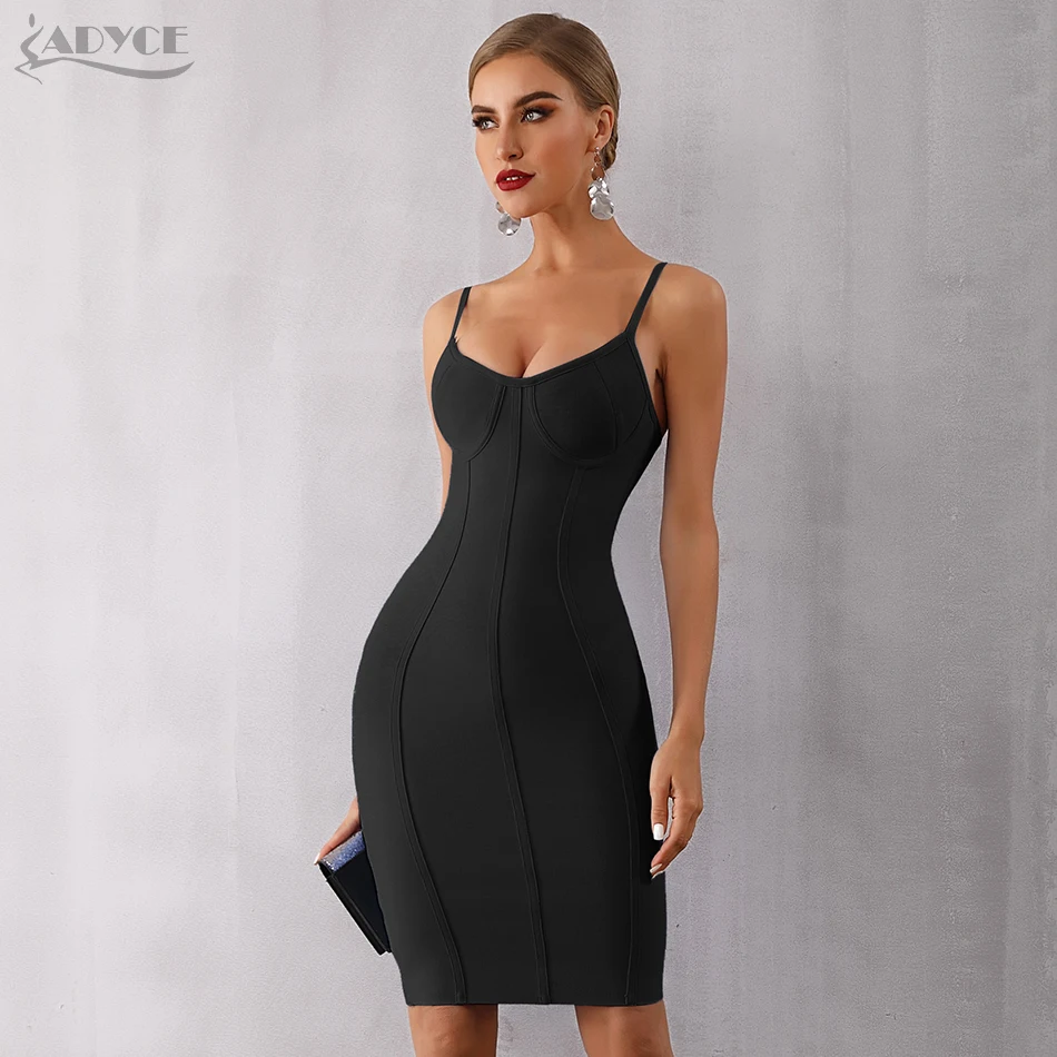 . (50% Off) Acheter Adyce 2019 nouveau été moulante robe de pansement femmes Sexy bleu Spaghetti sangle Vestido sans bretelles Midi célébrité soirée robe de soirée Pas Cher Prix.