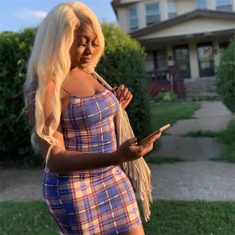 Product Name: ANJAMANOR bleu Plaid Spaghetti sangle Mini robe moulante femmes Sexy tenue de club décontracté vacances robes de pansement été 2019 D83 I80