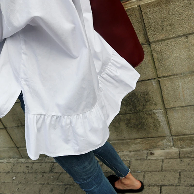 Product Name: BGTEEVER femmes volants ourlet col rabattu chemises blanches manchette Blouses lâches femme chemise décontracté hauts Blusas 2019