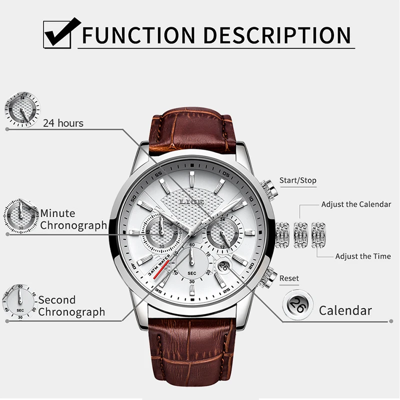 Product Name: LIGE hommes montres Top marque de luxe en cuir montre à quartz décontractée hommes militaire Sport étanche horloge noir montre Relogio Masculino