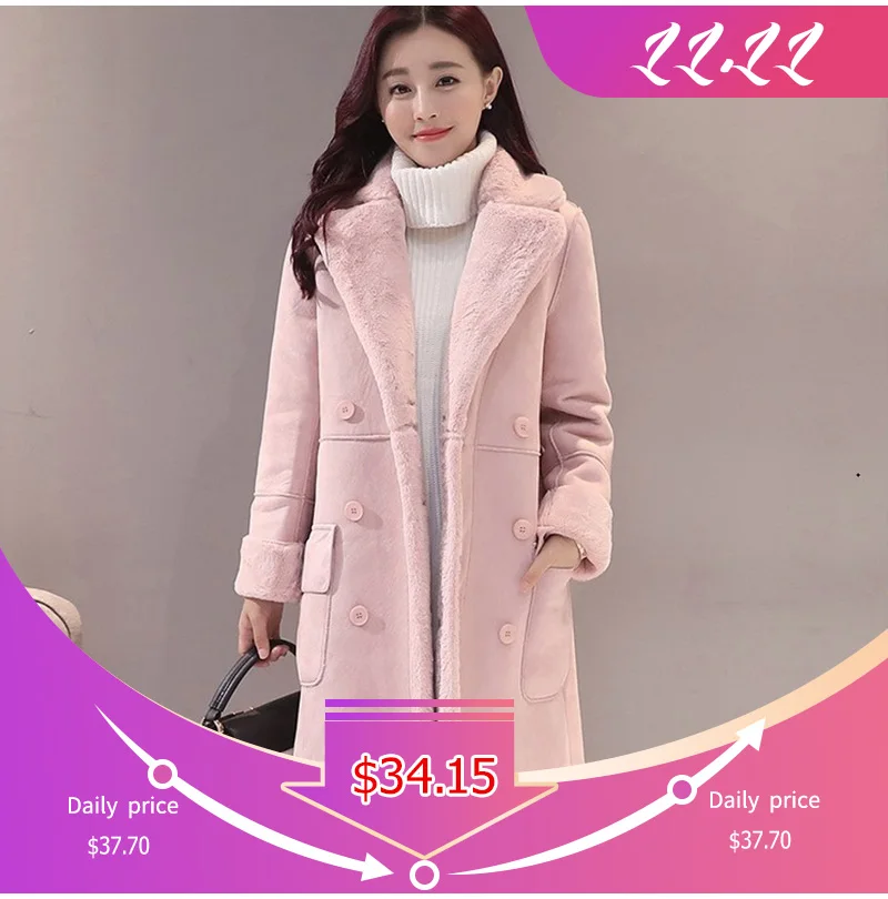 Special Offer Femmes daim fourrure manteau épais chaud fausse peau de mouton longue veste femme pardessus 2019 hiver mode solide Trench manteaux livraison directe Discount 32% Today!