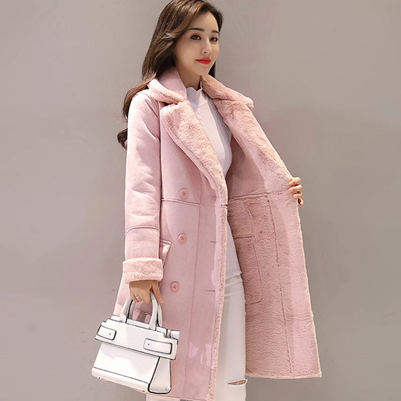 Product Name: Femmes daim fourrure manteau épais chaud fausse peau de mouton longue veste femme pardessus 2019 hiver mode solide Trench manteaux livraison directe