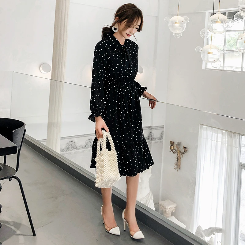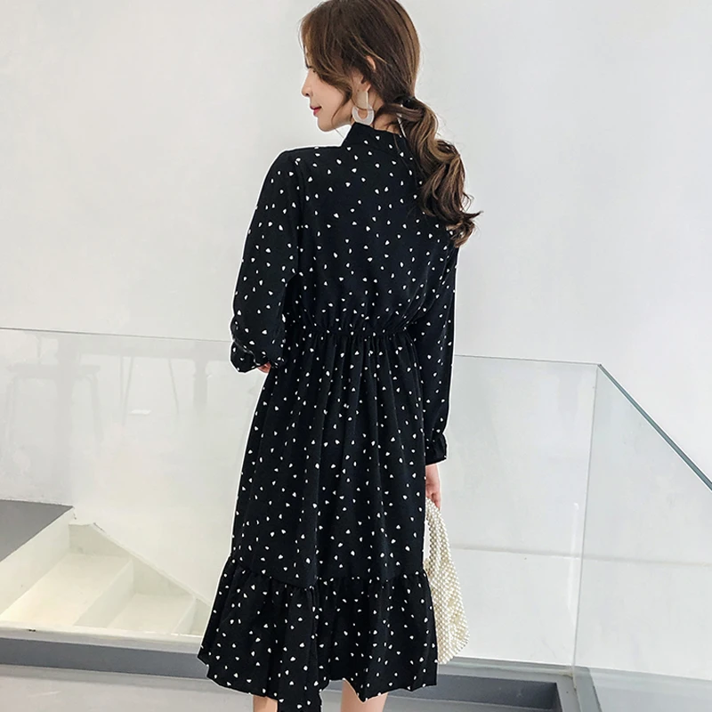 Product Name: BGTEEVER 2019 printemps arc col cœurs imprimer femmes robe en mousseline de soie taille élastique Flare manches femme robe élégante a ligne Vestidos