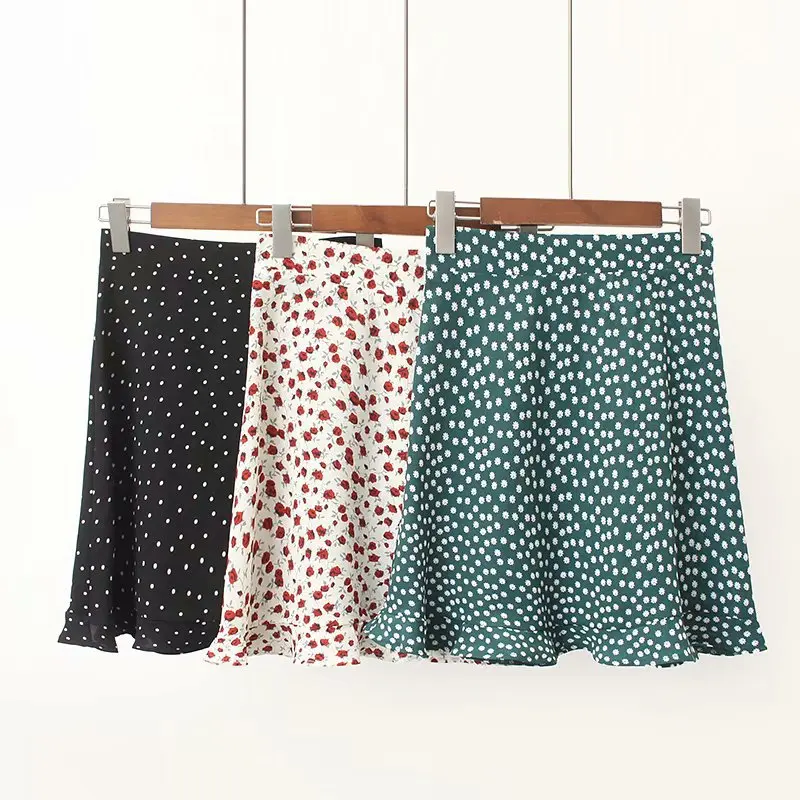 Product Name: Été femme plage boho sexy mini jupe femme 2019 femmes décontracté floral imprimé volants ourlet taille haute jupe jupes pour les femmes