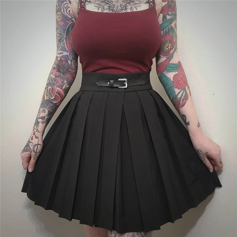 Product Name: InstaHot gothique taille haute plissé jupes femmes 2019 Punk école Style froncé noir plissé Mini jupes boucle Streetwear printemps