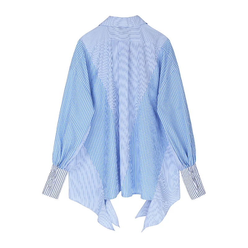 Product Name: [EAM] femmes rayé épissé grande taille Blouse asymétrique nouveau revers à manches longues coupe ample chemise mode printemps automne 2019 JZ687