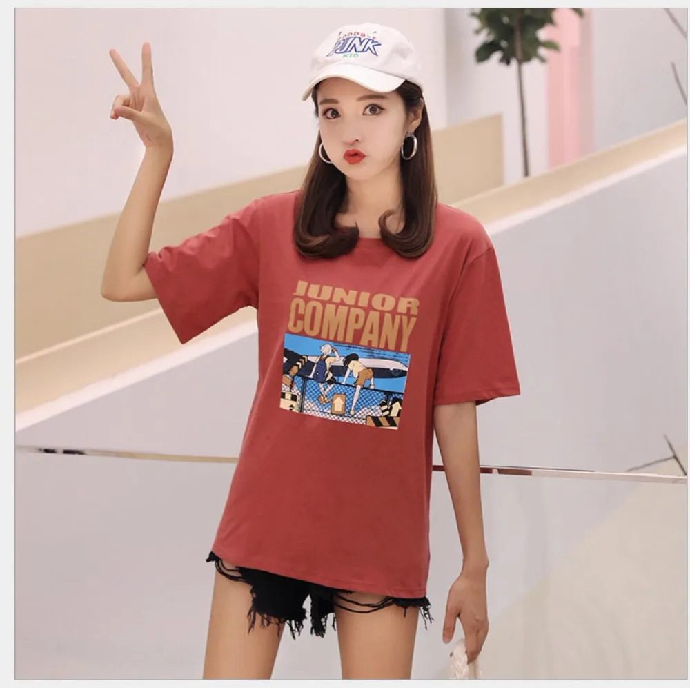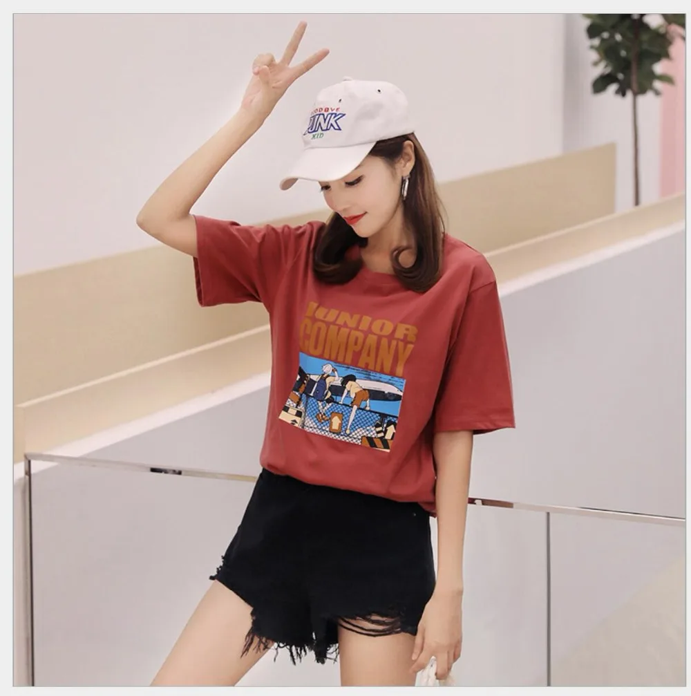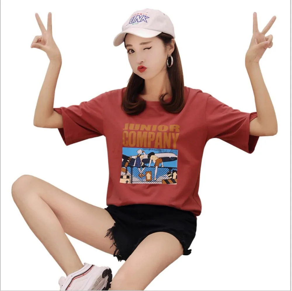 Product Name: 2019 nouveauté T shirt printemps été imprimé à manches courtes col rond coton femmes hauts lâche femme T shirt JY1008