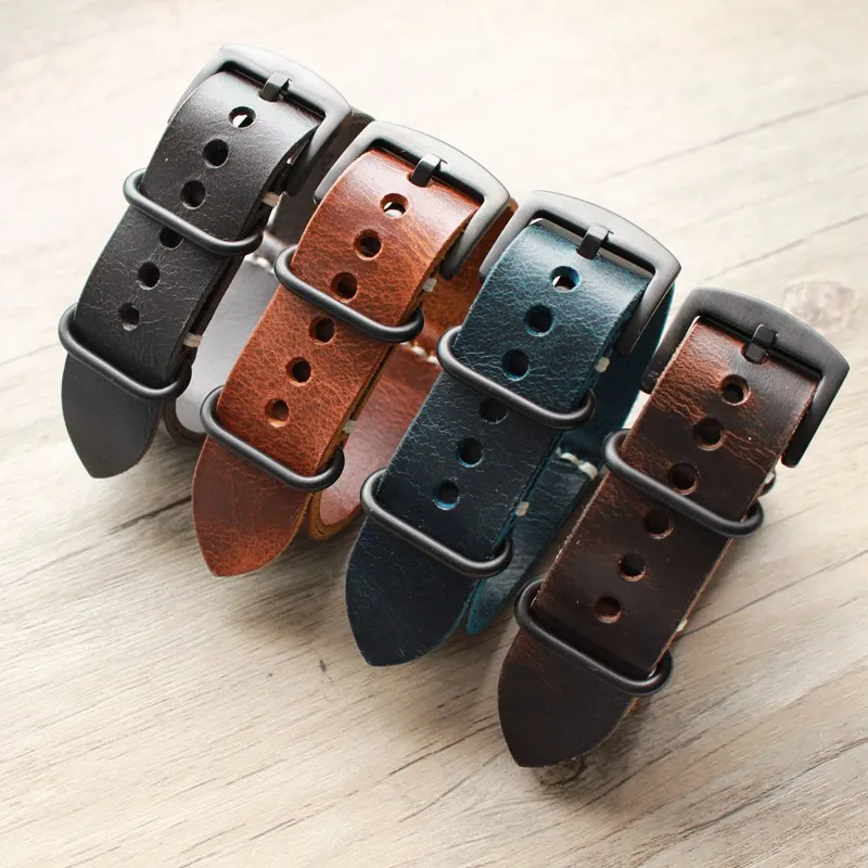 Product Name: Nouveau bracelet de montre de remplacement Carty fait à la main en cuir de cheval fou bracelet de montre 22mm 20mm 24mm Zulu otan noir marron bleu bracelet de montre