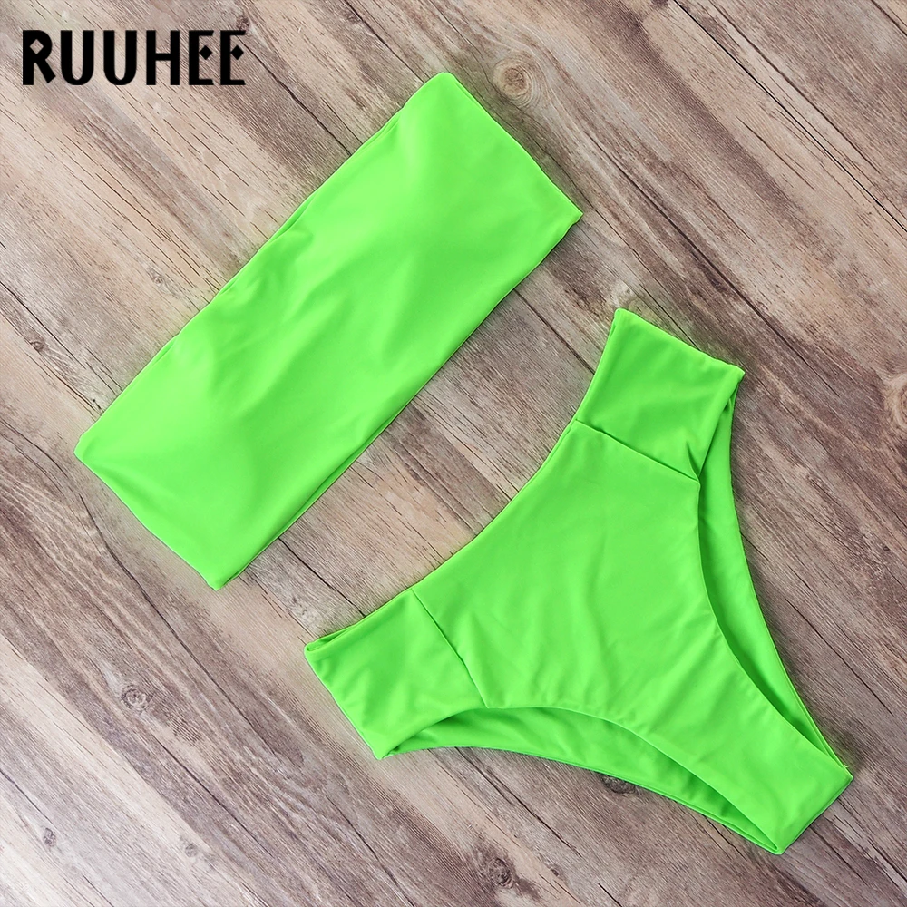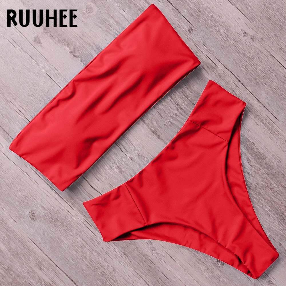 Special Offer RUUHEE solide maillot de bain Bikini maillot de bain femmes 2019 Bikini ensemble sans bretelles pansement maillot de bain taille haute femme maillots de bain maillot de bain Discount 38% Today!