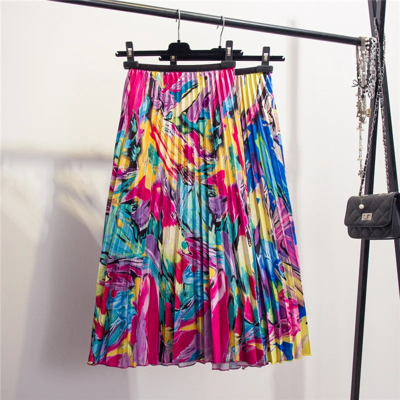 Product Name: 2019 nouvelle mode taille haute plissée jupe femmes automne hiver Midi jupes femmes taille élastique une ligne longues jupes pour femmes Rok