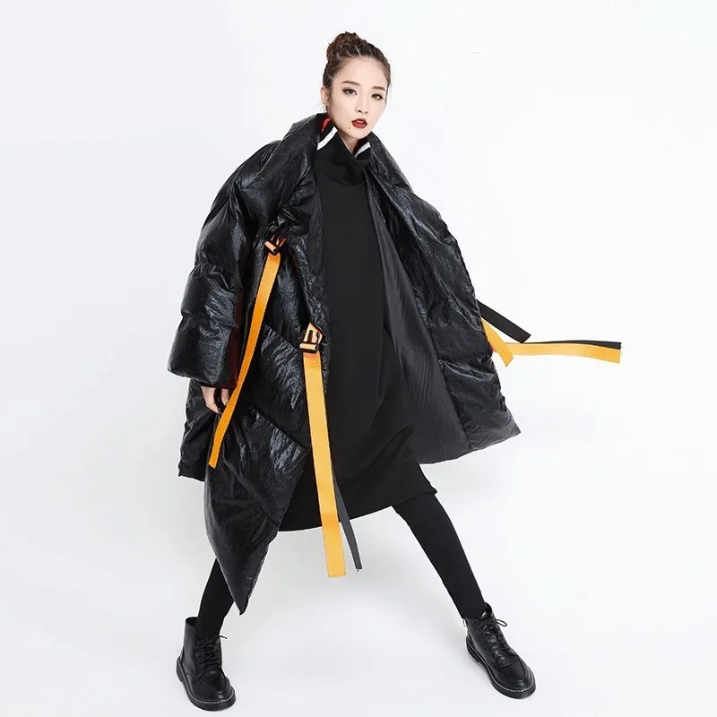 Product Name: CHICEVER 2019 rubans femmes hiver doudoune col montant à manches longues asymétrique veste femme mode vêtements marée