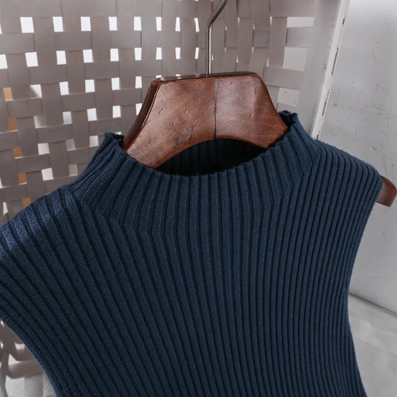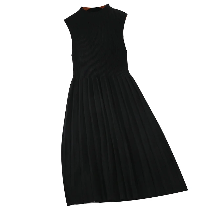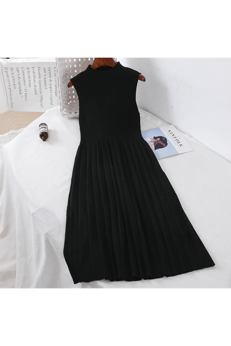 Product Name: 2019 nouveau mode femmes tricoté robes rétro col haut longue sans manches tricot pull robe