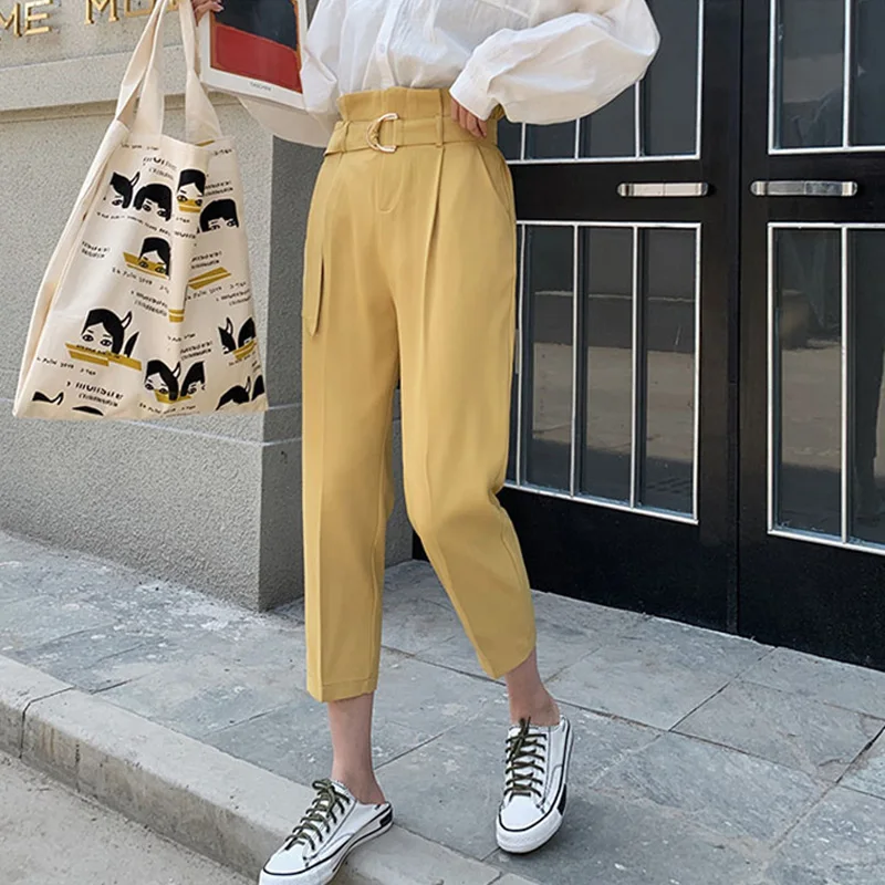 Special Offer BGTEEVER pantalons décontractés femmes solide taille haute ceinture crayon pantalon bureau dame costume pantalon élégant femmes pantalon 2019 Discount 45% Today!