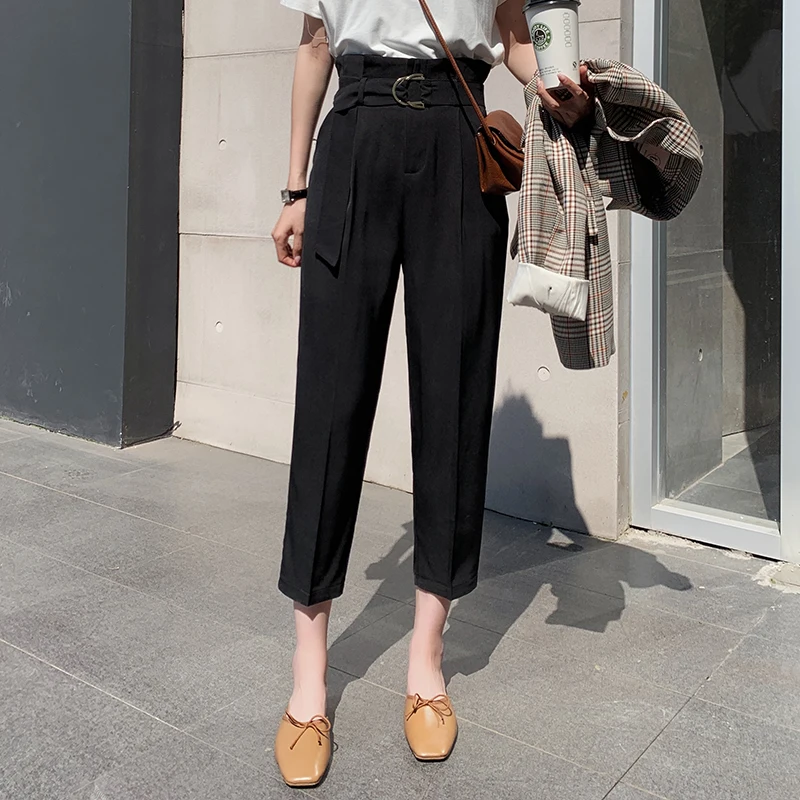 Product Name: BGTEEVER pantalons décontractés femmes solide taille haute ceinture crayon pantalon bureau dame costume pantalon élégant femmes pantalon 2019
