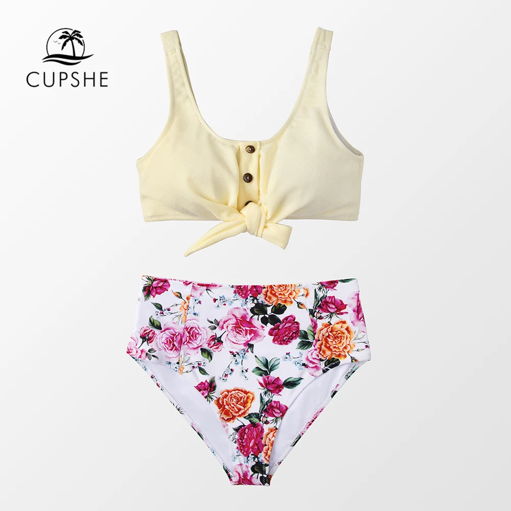 . (47% Off) Achat CUPSHE solide cravate devant débardeur et Floral taille haute Bikini ensembles 2019 femmes Boho bouton deux pièces maillots de bain Pas Cher En Ligne.