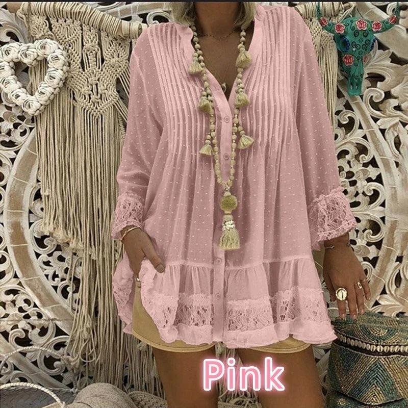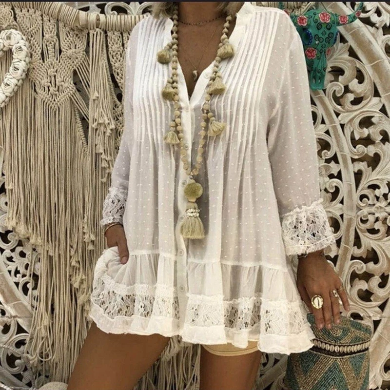 Product Name: Printemps femmes chemises 2019 dentelle mousseline de soie col en v tunique Blouse chemise automne à manches longues solide lâche femmes hauts et chemisiers grande taille