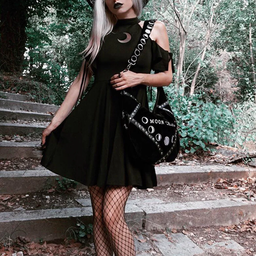 . (53% Off) Acheter Femmes licou noir gothique robe été Sexy épaule froide voir si Mini robes 2019 mignon japon fille creux Goth robe courte Pas Cher En Ligne.
