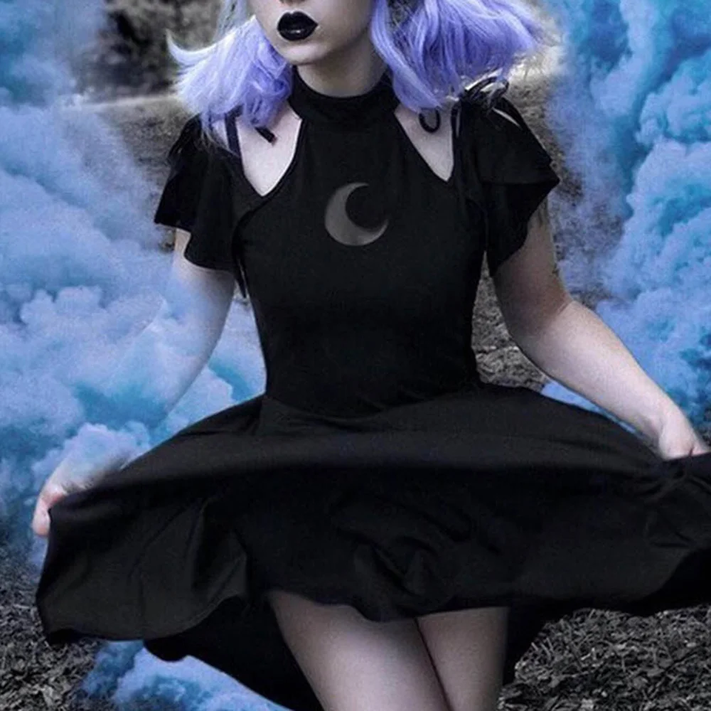 Product Name: Femmes licou noir gothique robe été Sexy épaule froide voir si Mini robes 2019 mignon japon fille creux Goth robe courte