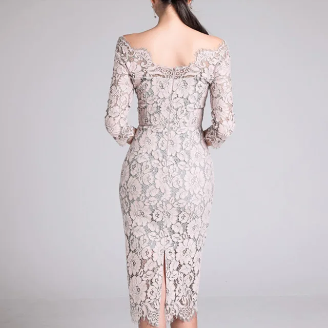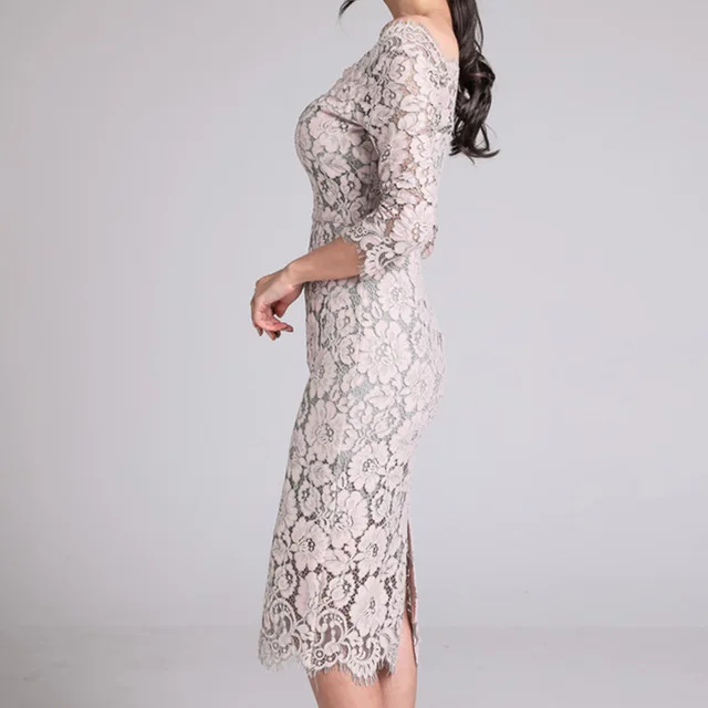 Special Offer Nouvelle arrivée mode femmes robe automne 2019 nouveau un cou bas poitrine dentelle sept minutes manches enveloppées hanche robe Discount 10% Today!