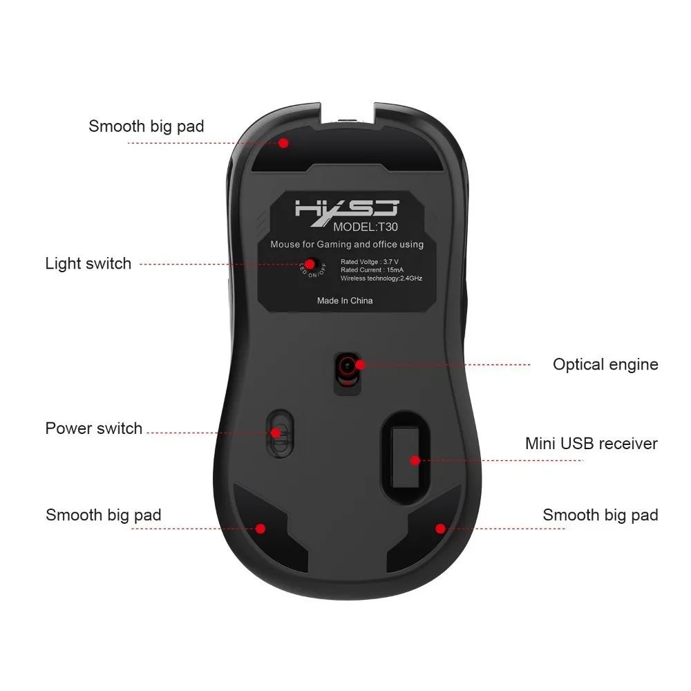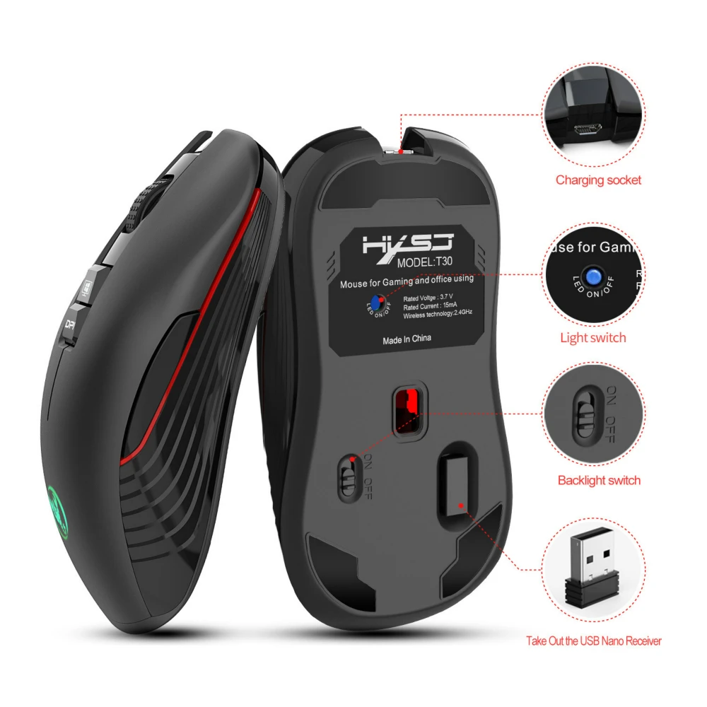 Product Name: Souris sans fil T30 7 bouton 3600 DPI souris muette Rechargeable avec adaptateur TYPE C récepteur USB pour Macbook ordinateur portable Gamer Gaming