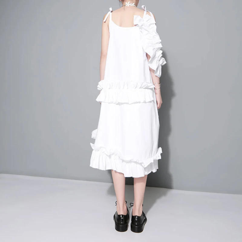 Special Offer [EAM] 2017 Nouvelle automne Irrégulière Multicouche Ruches Solide Couleur Lâche De Mode Sexy Robe Femmes À La Mode Marée J211 Discount 17% Today!